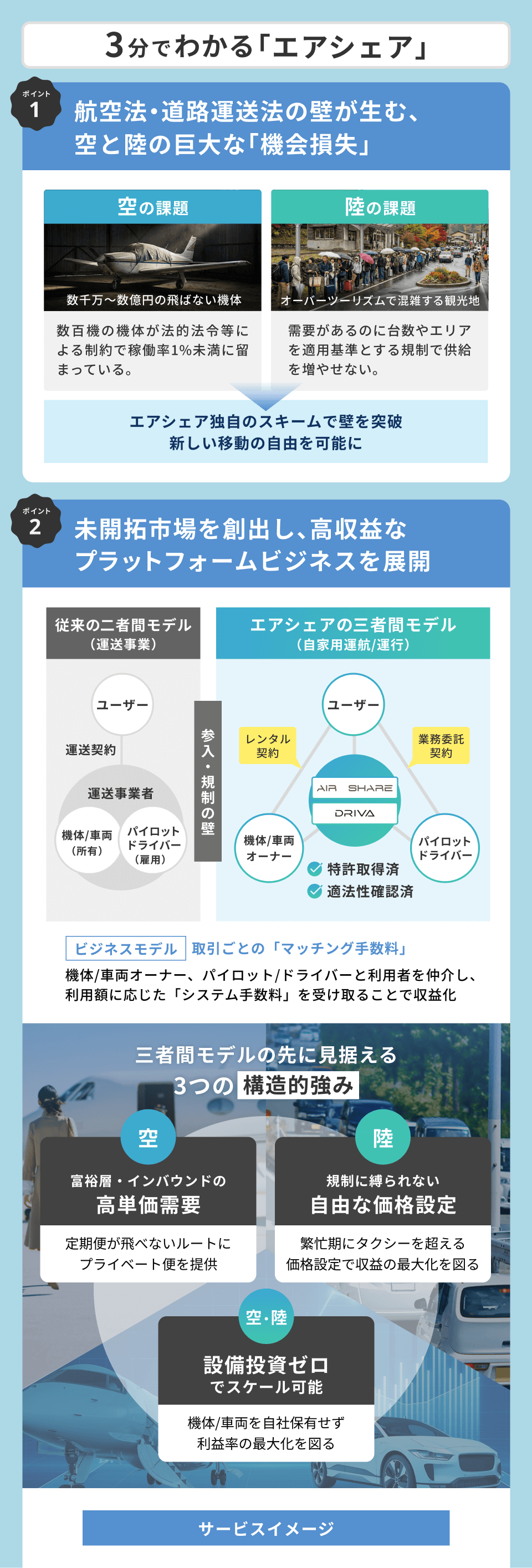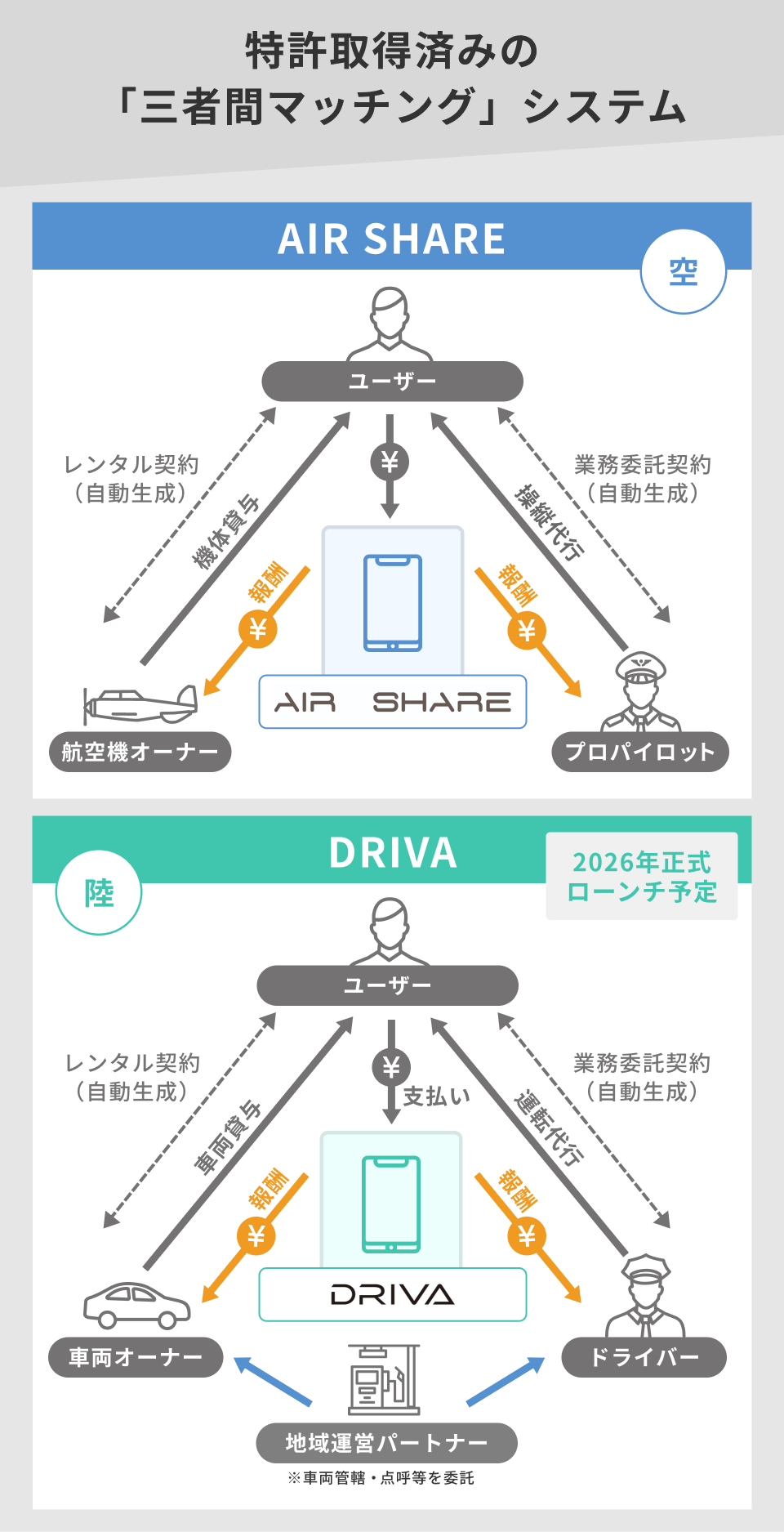 ソリューション・サービス空の「AIR SHARE」と陸の「DRIVA」。特許スキームで日本の移動を“直行便”に変える、次世代シェアリング
