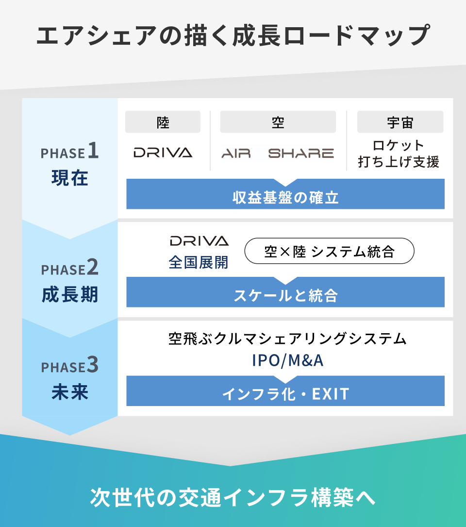 この独自スキームは空だけでなく、陸の移動も変革します。2026年1月に正式ローンチ予定の「DRIVA」(ドライバ)は、エリアや価格、時間の制約に縛られないエアシェア独自のライドシェアサービスです。すでに実証実験において高単価での黒字化モデルを確認しており、規制の壁で競合が参入しにくい未開拓領域での独占的なポジションの確立を目指しています。
