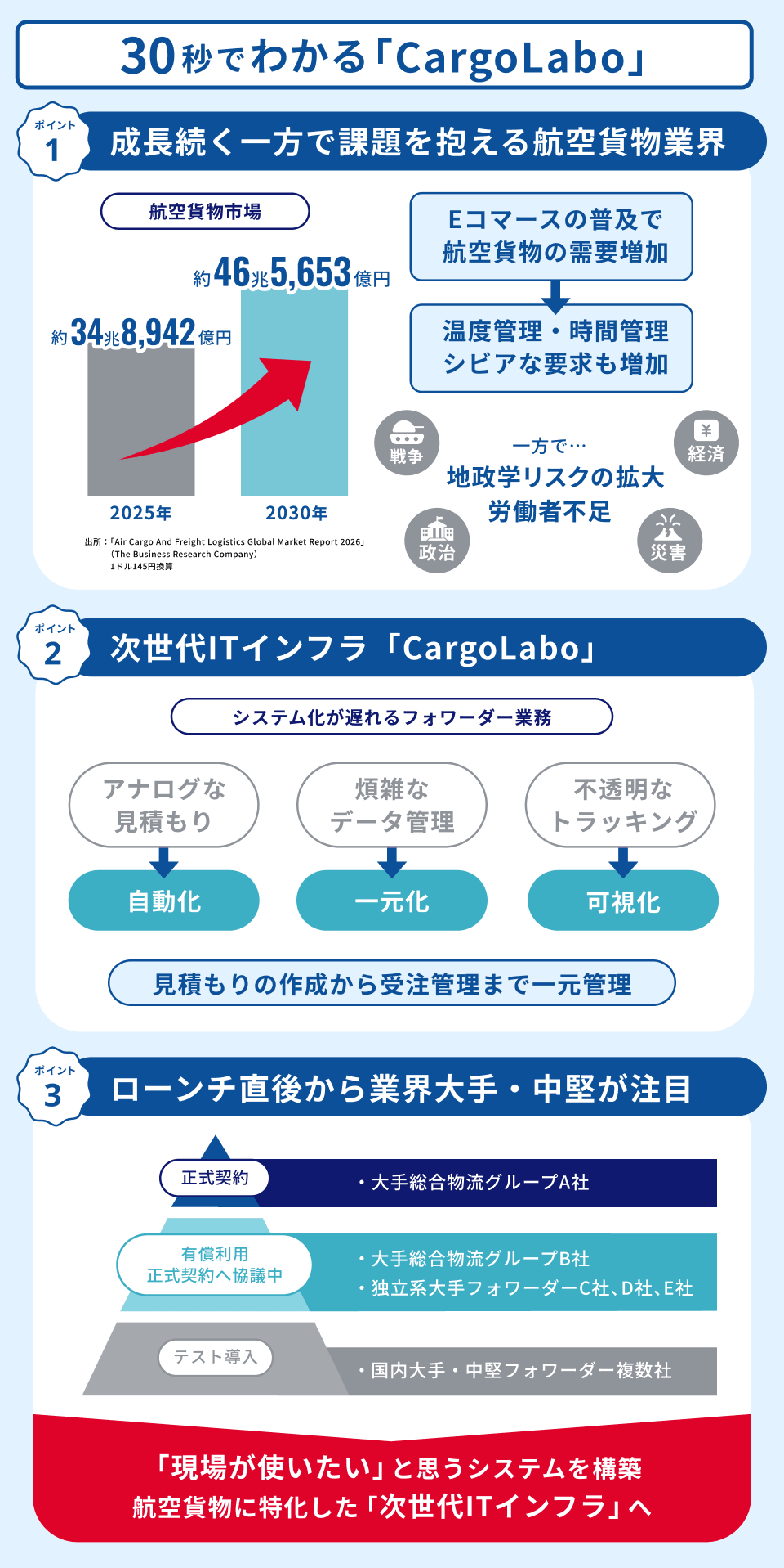 株式会社CargoLaboは、航空貨物に特化した次世代ITインフラ「CargoLabo」を提供するスタートアップです。