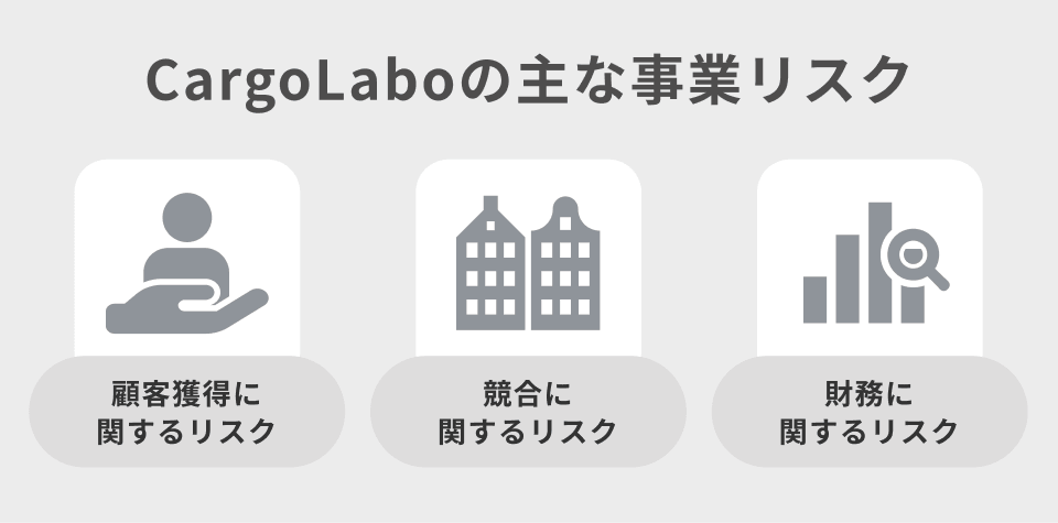 CargoLabo社の事業に関わる主要なリスクには、次の3点が挙げられます。