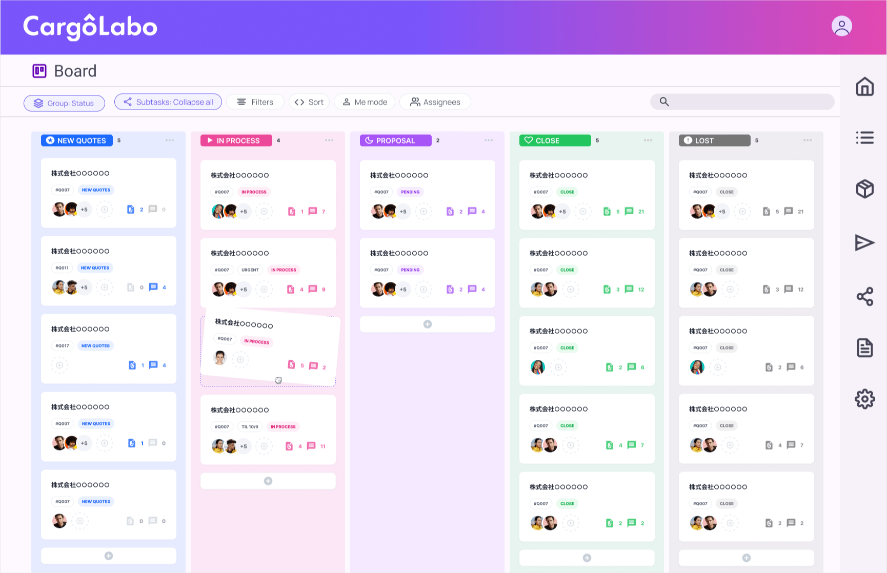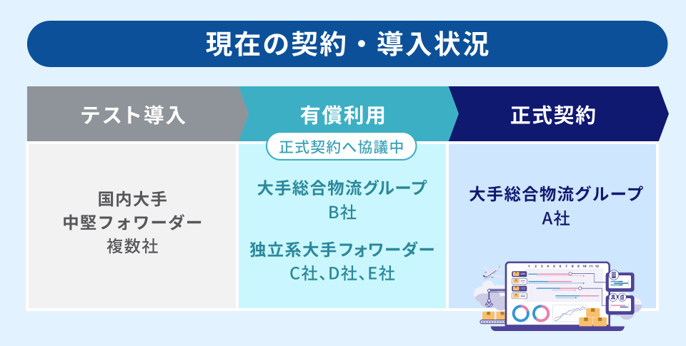 CargoLaboはフォワーダーが直面する泥臭い日常業務を効率化し、ルート変更やトラブル対応に時間を割ける環境を提供します。現在、大手総合物流グループとの正式契約に加え、従量課金で利用中の企業が複数社あり、いずれの導入先でも現場の担当者が日常的に利用するツールとして定着しつつあります。