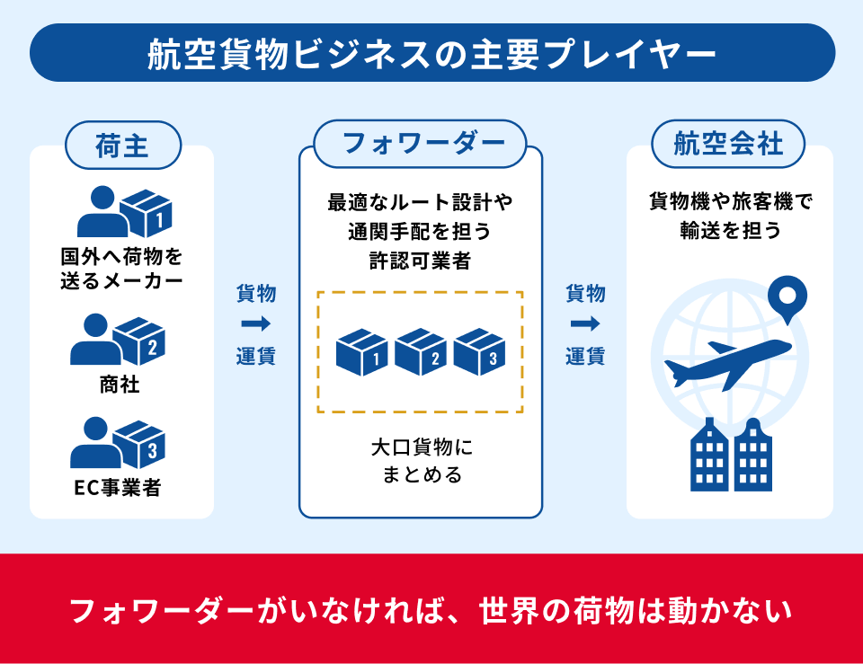 航空貨物は、主に3つのプレイヤーによって成り立っています。